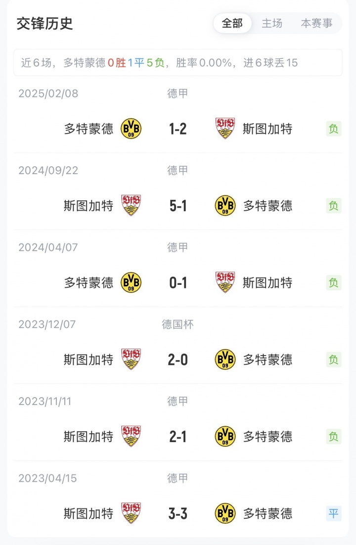 赛前多特6胜3平1负,积21分名次德甲第3;斯图加特7胜0平3负,积21分名次德甲第4。