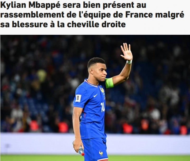 带伤出战?队报:姆巴佩本轮西甲扭伤脚踝,但仍坚捏去法国队报到