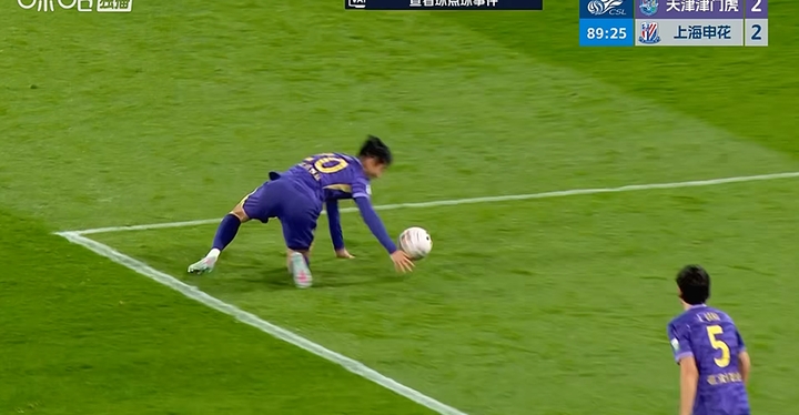 04月05日讯 中超第4轮,天津津门虎vs上海申花,赛事 第89分钟,申花获得十二码球!季胜攀回撤接盘带 自己滑倒,手臂碰到球了,主裁判 判决 十二码球,VAR介入确认十二码球判决 !拉唐主罚命中,申花3-2津门虎!