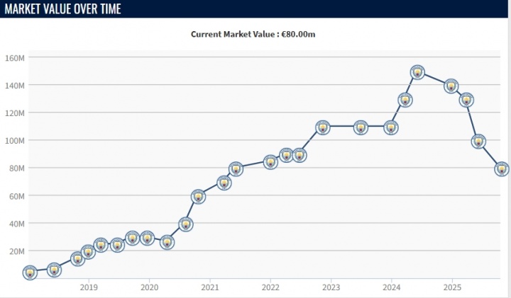 这阐述才8000万❓福登狡计2球赛季5球3助,1年身价跌了7000万😬