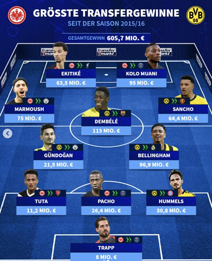 2026年1月10日,德国转会市集官方甩出重磅统计数据。统计限制锁定2015/16赛季以来,德甲球队单笔转会盈利最高的11东谈主威望。这份榜单径直呈现出极强的把持性,法兰克福霸占6席,多特蒙德拿下5席。德甲传统权门拜仁慕尼黑,愣是无一东谈主挤进榜单。