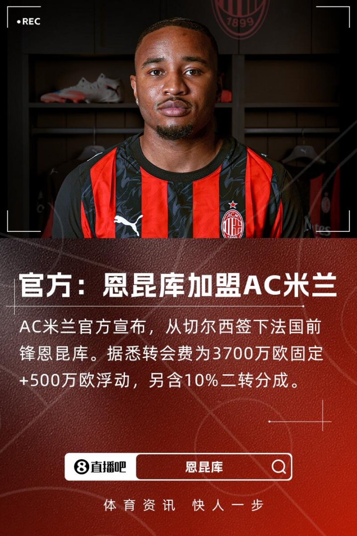 08月30日讯 AC米兰官方文书,签下切尔西时尚恩昆库,两边签约至2030年,球员将身披18号球衣。