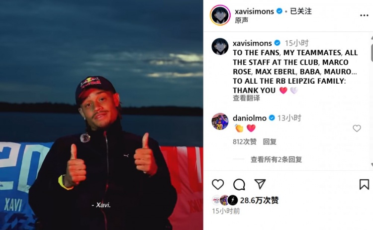 西蒙斯社媒告别:感谢球迷、队友以及莱比锡全球庭的每一位成员