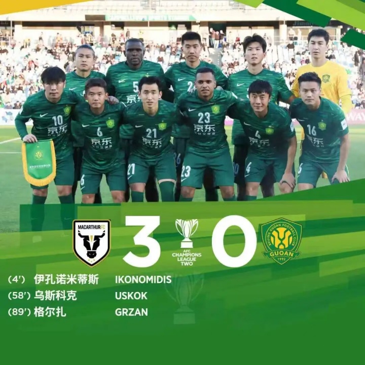 国安官方在本场比赛的战报中写说念:“10月2日,在2025-26亚冠二级联赛小组赛第2轮中,北京国安客场0-3负于麦克阿瑟FC。上半场比赛第4分钟,对方由伊孔诺米蒂斯打入一球。濒临澳超球队的体魄叛逆强度,北京国安彰着不太合乎。第12分钟,张玉宁禁区旯旮鼎力抽射,莫得掷中球门。第23分钟,李磊前插到禁区内射门,球被对方门将化解。终末技能,李磊的前插再度制造要挟,可惜莫得变成射门。上半场比赛截至,北京国安0-1麦克阿瑟FC。易边再战,第52分钟,张玉宁禁区外倒钩射门偏出。第58分钟,对方由6号乌斯科克再入一球。随后,国安接连换上法比奥、古加、曹永竞、林良铭和塞尔吉尼奥等队员加强热切。第71分钟,古加禁区前沿的远射偏出。第89分钟,麦克阿瑟FC由格尔扎攻入第3球。最终,北京国安客场0-3负于麦克阿瑟FC。