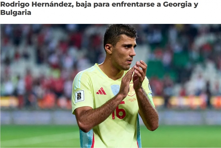 罗德里此前因膝盖伤势,8月23号才复出,但上月底再次感到膝盖难熬。