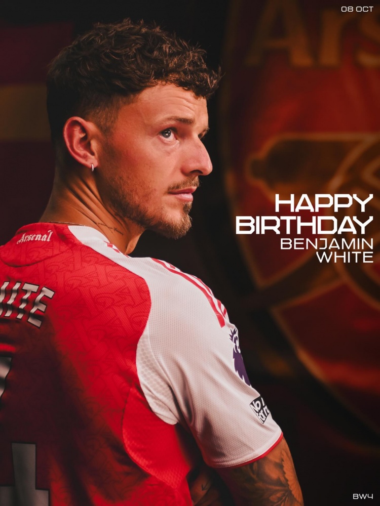 阿森纳官方社媒晒出本-怀特的诞辰海报,配文:“诞辰答允,本-怀特。”