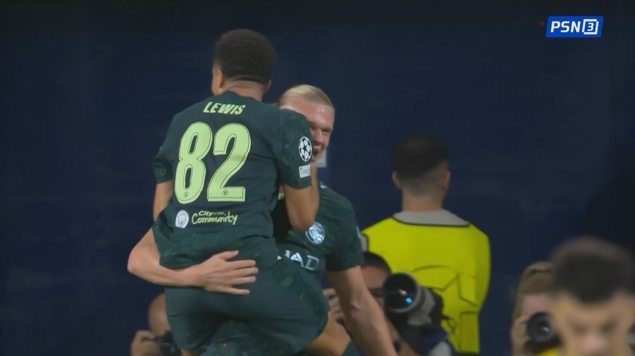 连合12场破门!哈兰德接刘易斯横传抢点捅射破门 曼城1-0提升黄潜